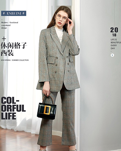 3、在面料品种上:我们采用最新技术的面料和注重面料的多样性,以棉、麻、呢,针织、梭织富有质感的斜纹面料,粗纺呢,细腻柔软的毛料等几大系列为主打,温暖的羊毛、兔毛、灵巧的方格子。勾勒出舒适流畅的线条,再加上可塑造型的棉涤纺来全新演释都市女性的“时尚与优雅”。在色彩上采用国际流行色,以紫色、粉色、米色为主,与经典的黑白色系相结合,同时也延续了蓝色、灰色、橘红色等基本色系。