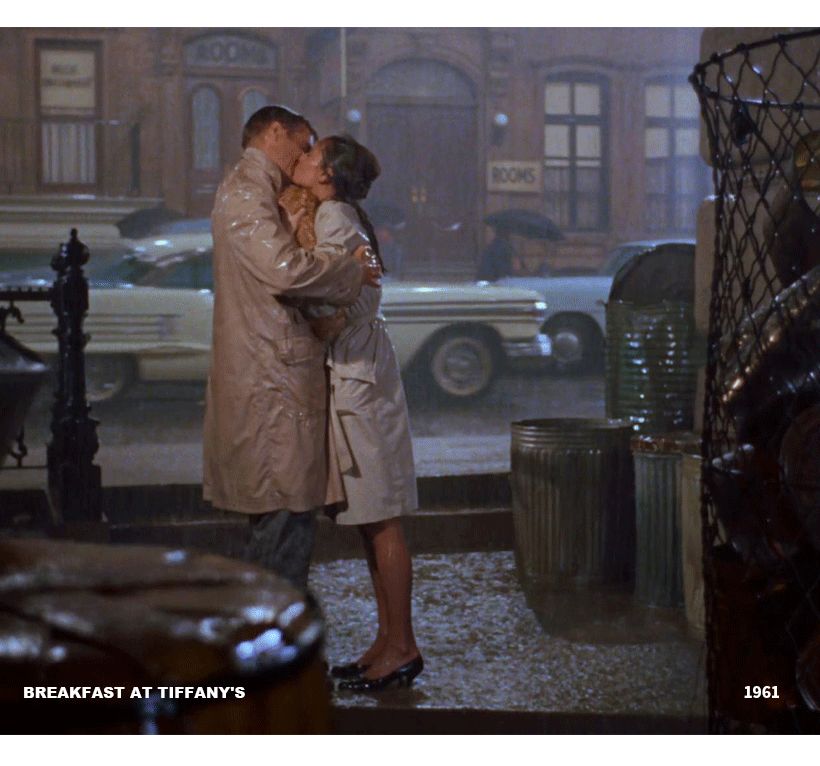 见证audrey hepburn 和 george peppard 在雨中拥吻