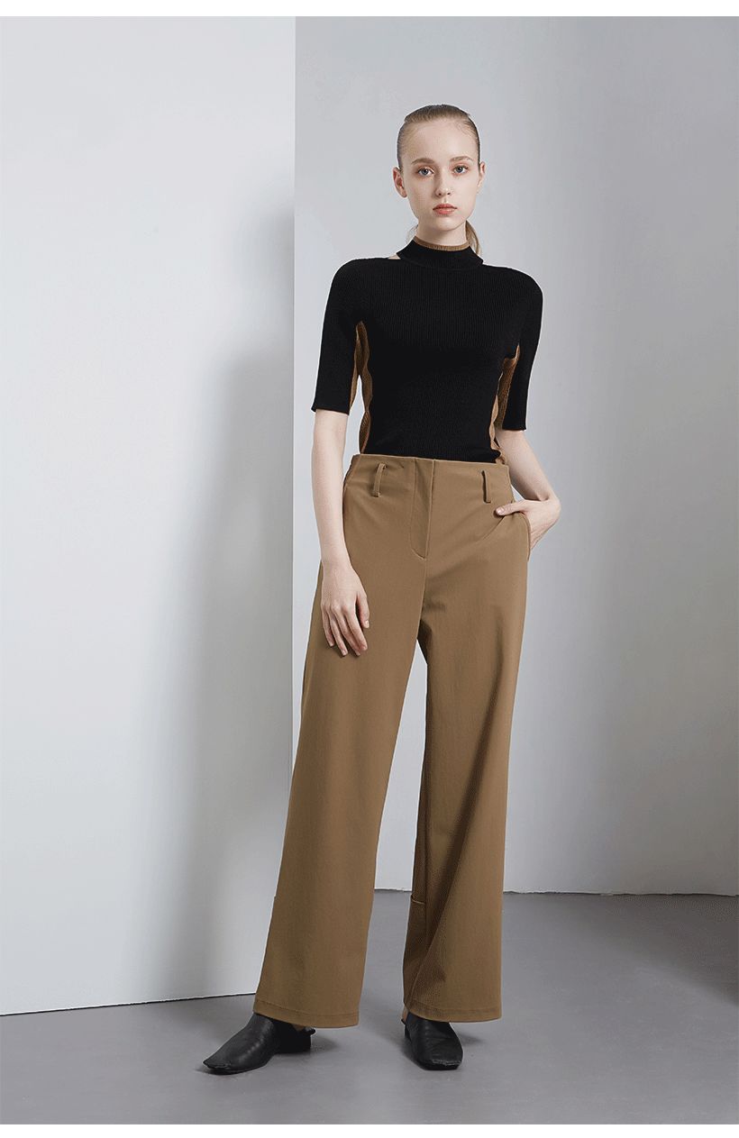 条纹上衣和米白裤子搭配,营造出柔和的文艺味道