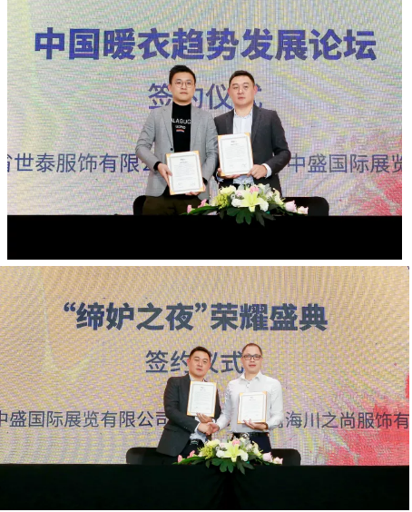 此次发布会除了国际合作和行业大赛内容,还有一系列重磅签约。ckiw总经理杨清云先生相继与深圳贝利爽实业有限公司总经理马浩然、浙江诸暨市袜业协会秘书长章玉铭、世泰智造总经理吴维健和佛山市南海川之尚服饰有限公司董事长陈彦宇就“杜邦科技材料驱动时尚未来”论坛、中国袜业峰会、中国暖衣趋势发展论坛和“缔妒之夜”荣耀盛典隆重签约,实打实的呈现了ckiw深圳针博会的高规格、大规模。