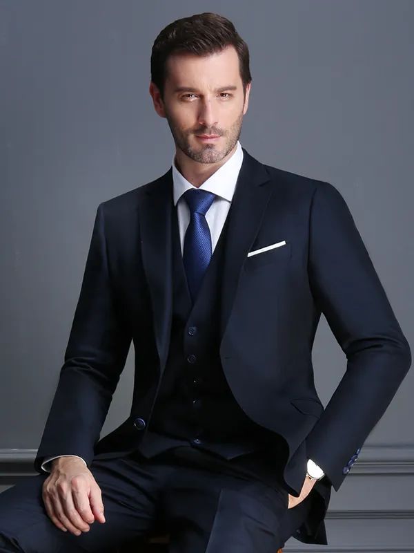 深色西装是商务需要最常见的颜色,也是基本色。工作中的男人需要扮演绅士形象,深色西装至少要有一件,代表有单色和条纹两种。