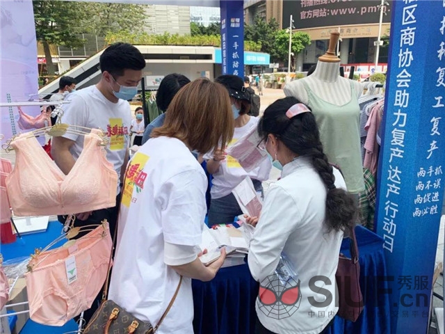 4 月 17 日下午,由福田区企业发展服务中心、福田区非公经济组织党委、福田区华强北街道办事处主办,深圳市内衣行业协会及福田辖区各商协会联合协办的“春暖福田——2020 年福田辖区商协会助力复产达产行动日”在深圳市福田区华强北商业步行街圆满举行。我会携会员单位淳度、闺秘雅、梦依诗等福田区内衣企业参展。