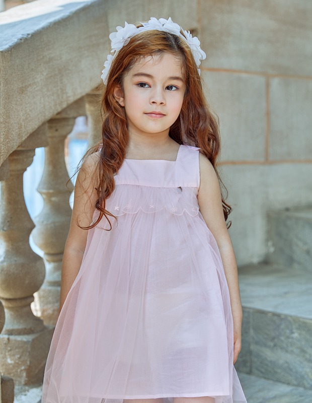 清新婉约时尚的纯净风格,有着一种欧式风格的浪漫和柔情,用贴合的自然健康呵护小公主的穿搭需求,粉色的一条连衣裙,拼接视觉,轻松舒适的样子真美。