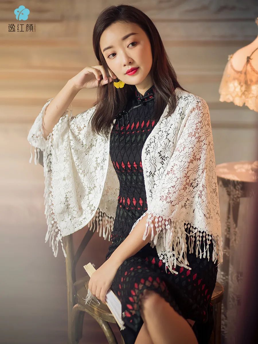 今年这种小外搭很火~ 镂空设计,各自不同的花型,这一件结合了披肩和外套的外搭,绝对是最独特有范儿的那个~ 宽松舒适披在旗袍外面造型感更强,建议姐妹们入手她!