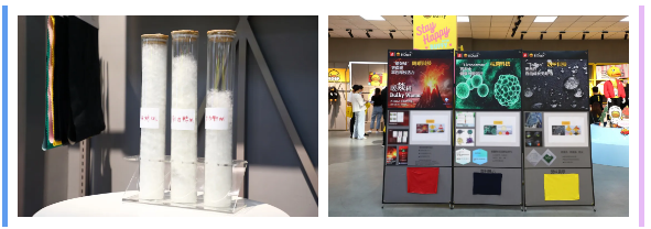 3、服装订货厅通过陈列飓暖科技面料、抗菌科技面料、防护科技面料,将保暖、杀菌、防护功能以及羽绒服白鹅绒内材的使用,向小伙伴直观展示和演绎本次服装的研发亮点。