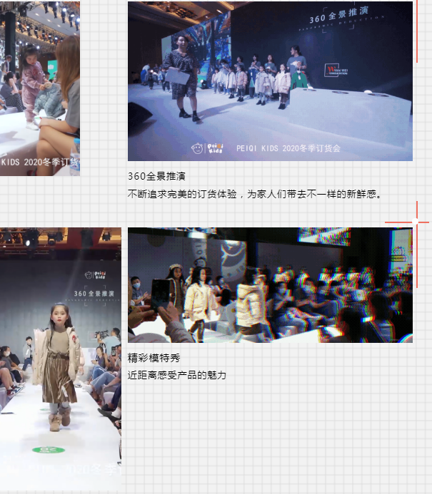 2020 peiqi kids冬季新品订货会依旧采用360全景推演订货,全程以动态的方式将产品毫无保留的呈现给大家。
