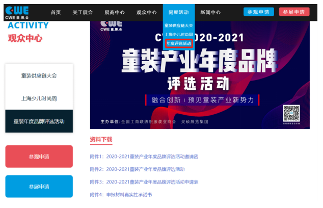 关注官方微信公众号”cwe童博会”,点击菜单栏“关于展会—年度评选活动”
