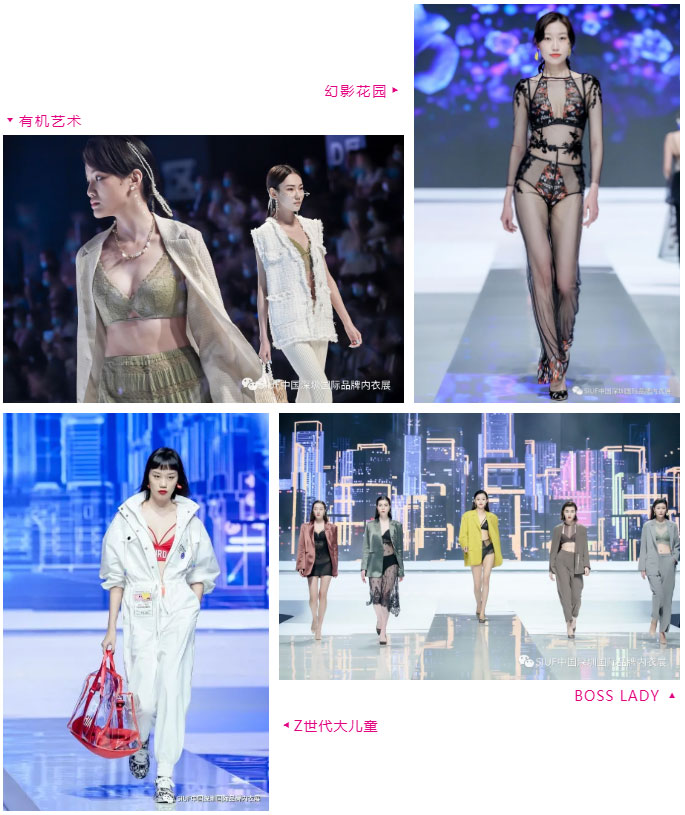 大秀在精彩的视觉享受中,带来行业思考。据悉,此次趋势秀以“内衣时尚穿搭”为核心概念,带来“有机艺术,幻影花园,z世代大儿童,boss lady”四个主题60套精选概念品,呈现内衣外搭的时尚趋势,引出内衣与外衣关系的思考。