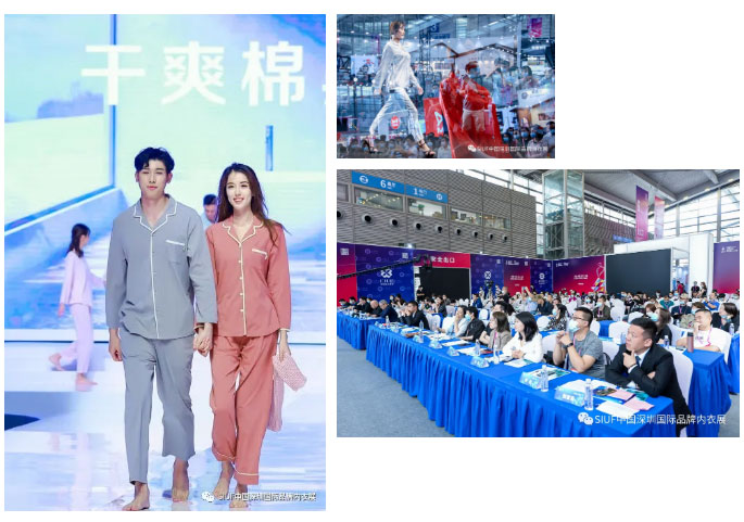 当日下午,在深圳会展中心2号馆和6号馆论坛区举办2021中国内衣峰会『数智增长·品效先机』主题论坛、德州华源生态『源·启自然』主题论坛、流行趋势2022’中国内衣设计师沙龙。同时5号馆动态发布馆,品牌精彩走秀不断上演。红豆居家干爽棉睡衣发布会,『如吻』品牌专场秀,浪莎、粉韵&晨心语、a+&伴沫等品牌时尚发布秀轮番来袭,燃爆现场。