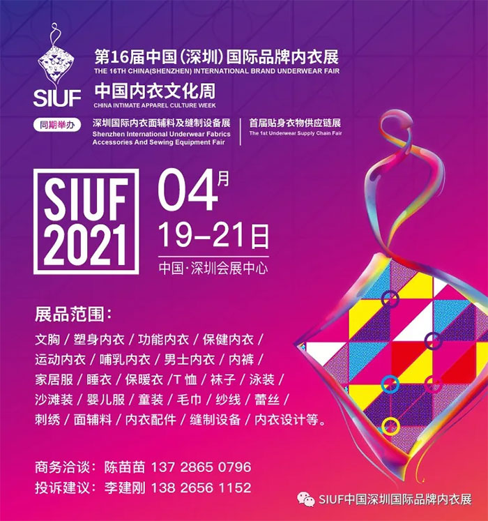 与2021中国内衣文化周暨第16届中国(深圳)国际品牌内衣展同期在深圳会展中心亮相的还有,深圳国际内衣面辅料及缝制设备展、深圳国际贴身衣物供应链展,展览总面积达到82,500平方米,参展商达到800多家,超1000个优质内衣品牌,数以万计的潮流新品集中展示,吸引众多国内外买家到场寻求合作商机,畅通国内国际“双循环”。