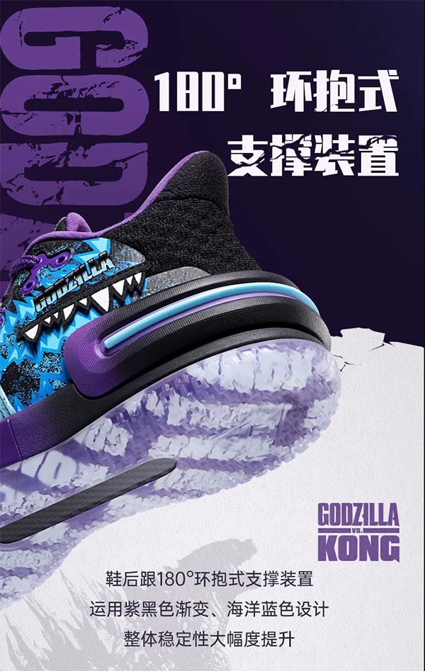 鞋面采用哥斯拉代表色紫蓝色