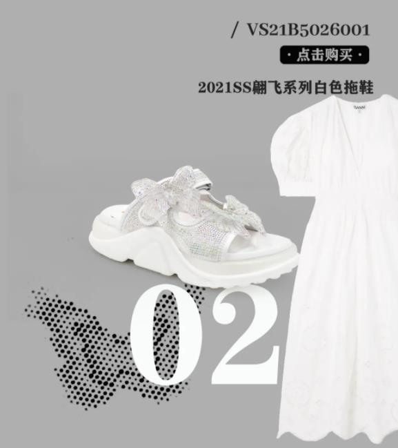 纯黑色连衣长裙搭配翩飞白色蝴蝶凉鞋