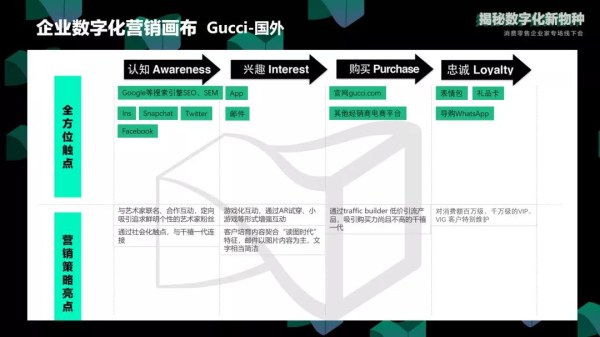 翻看Gucci2016年的财报,里面明确指出,数字化创新是Gucci的支撑策略。我们经过研究发现,Gucci的数字化运用主要体现在营销端。