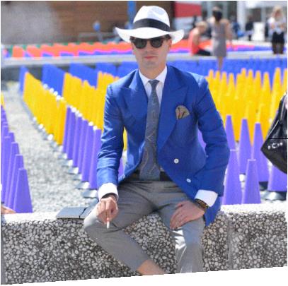 在2021线下回归的意大利pitti展的现场,也可以捕捉到很多克莱因蓝的身影,他成为众多时尚大咖种草的颜色,或是整件单品,又或是部分的点缀,一举拿下大众眼球,成为现场亮丽的风景。