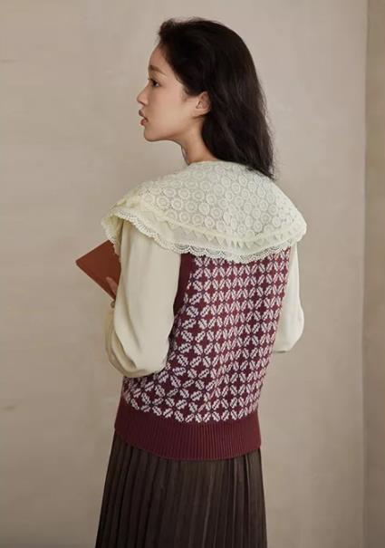 {提花马甲+娃娃领衬衫=复古减龄}