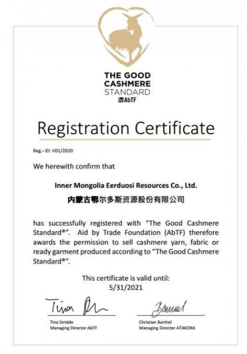这一年,鄂尔多斯羊绒板块完成了从纤维到成品的选、洗、梳、纺到针、机织生产的完整产业链的可持续纺织生产认证。同时,公司顺利通过欧洲环保组织abtf认证并成为中国第一家拿到gcs(good cashmere standard)认证证书的企业。此外,鄂尔多斯集团还顺利通过环境保护、可追溯、再生标志、社会责任和一般原则五大方面审核,获得grs®全球回收标准认证。