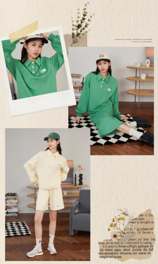 浅色系polo领情侣款卫衣套装清新亮眼