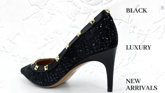 一双蕾丝黑色高跟鞋