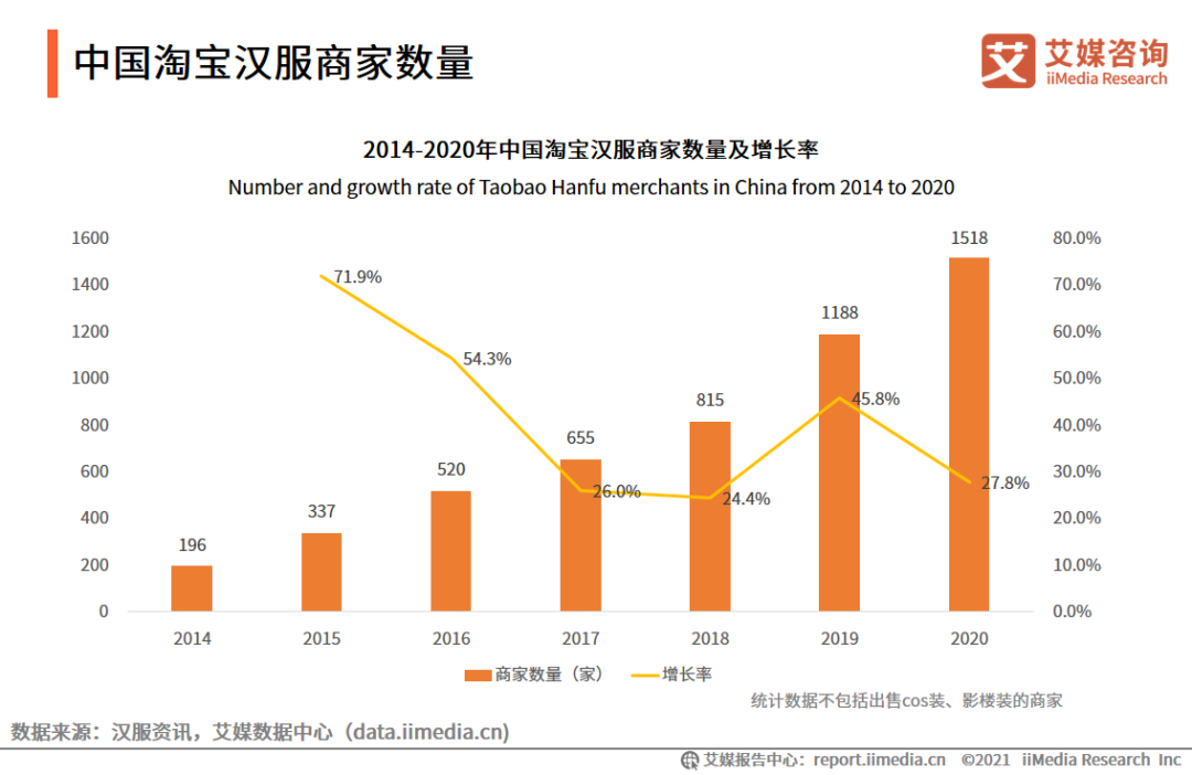 中国淘宝汉服商家数量