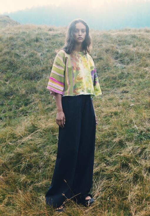 而“花园色彩”牛仔系列则是美国艺术家劳伦·卢洛夫 (lauren luloff) 与 sportmax 合作造就的版型经典、灵活百搭的全新力作。劳伦·卢洛夫热衷于在大型帆布或丝绸上着彩作画,其作品曾亮相纽约皇后区艺术博物馆 (the queens museum)、马乐伯画廊 (the marlborough gallery) 等各大知名展览机构,备受国际青睐。此次为卢洛夫首次涉足时尚领域,为 sportmax denim culture 系列特别创作多幅帆布画作。自然风光的微妙诗意经细细拆解并悉心重构,融蕴于比例柔和的上衣;亦呈现于款式合身、配宽大和服袖或超大廓形的各式 t 恤;或点缀于连帽运动衫、背部蕾丝系带的无袖修身紧身连衣裙;抑或自然装饰于腿型修长的五袋裤。此外,本季亦推出经巧妙设计的不对称条纹,巧妙排列点缀于及膝铅笔裙等服饰。