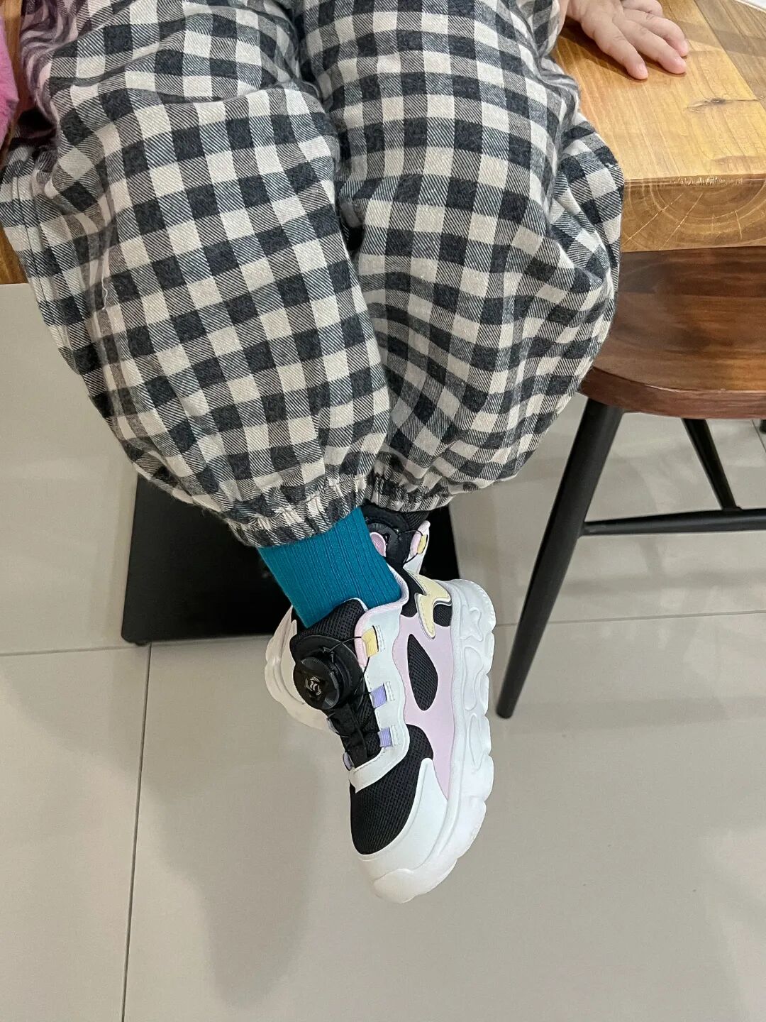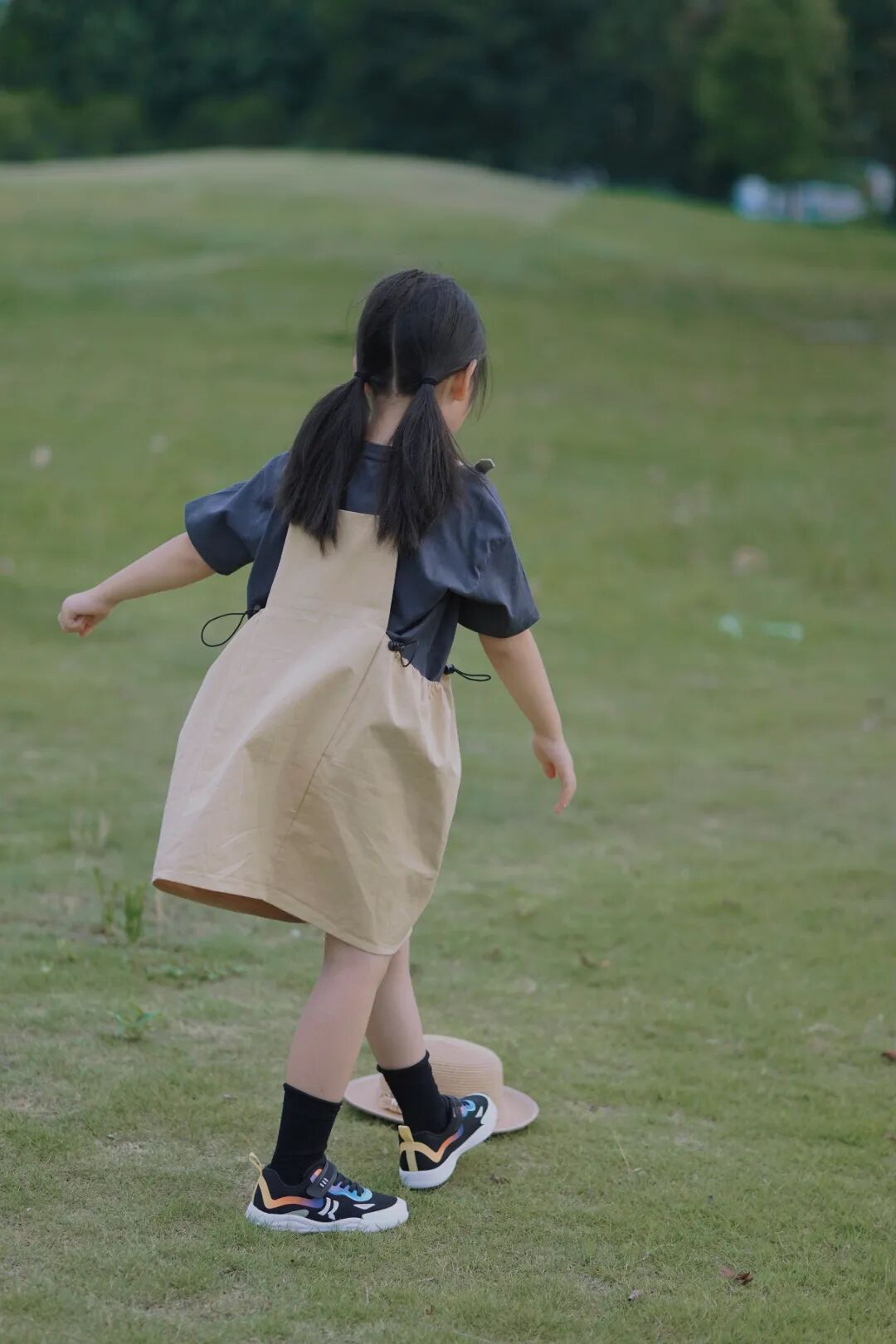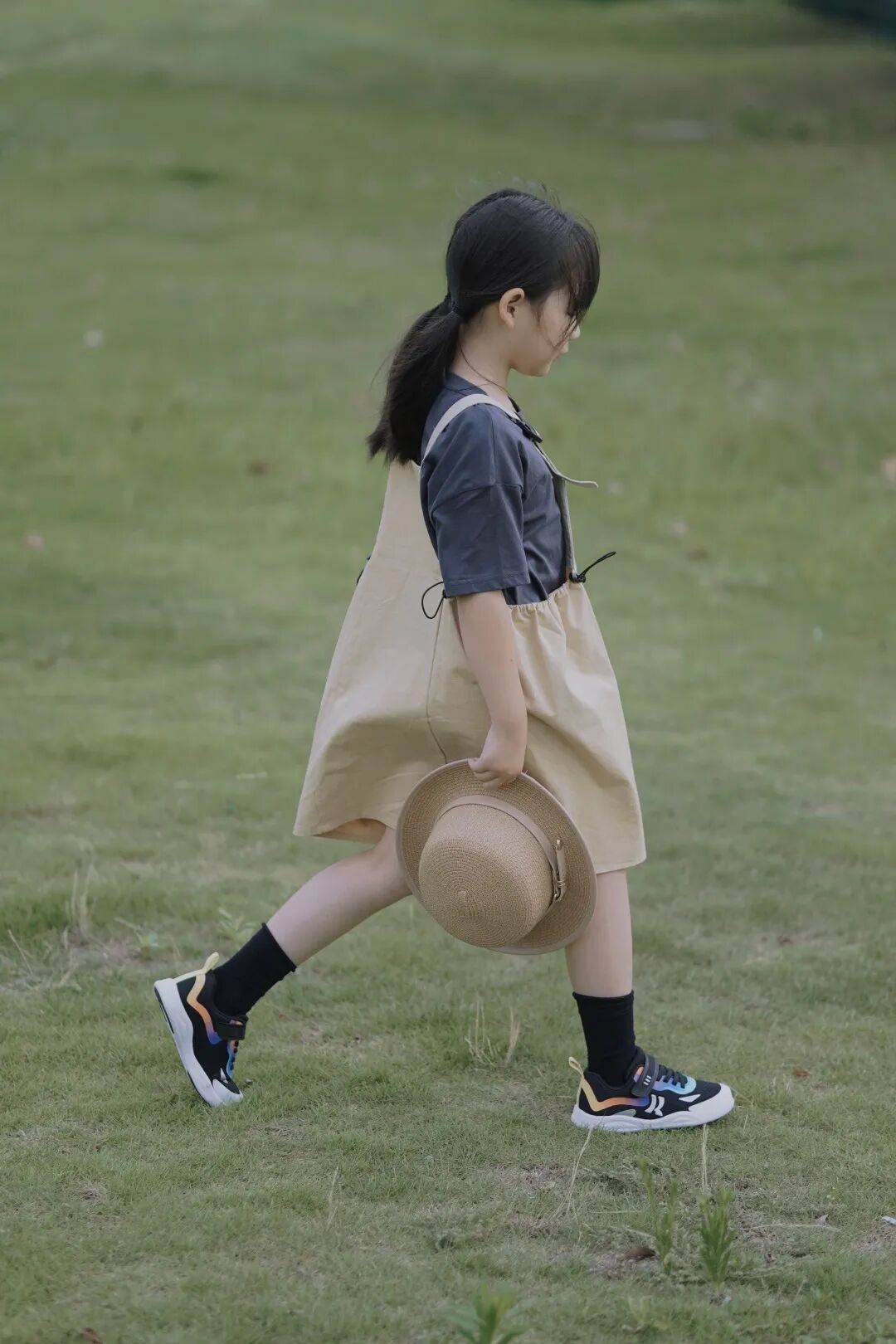 条纹长袖+牛仔背带裤+奶白休闲鞋