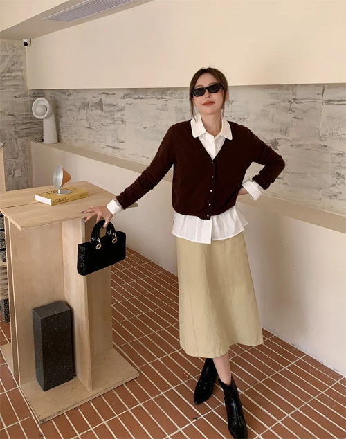 经典白衬衣,叠穿v领针织开衫,简单搭配瞬间拿捏住文艺气质感,时尚气场随手拈来,舒适又不费力。在微凉的秋风中,细腻柔软的针织面料足以带来丝丝缕缕温馨的暖意,赋予坚定的向前力量。