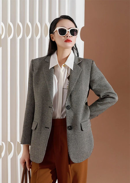 利落通勤时光又怎么能少得了一身西装穿搭呢,这款西装外套选用了深灰色的麻布面料,凸显都市女性的从容优雅气质。h形的西装版型加上简约大方的设计,整体流线感十足,一点都不显死板。e.pucci艾璞琪隶属于意大利时尚服装品牌群,结合流行趋势及时尚元素,为都市女性提供时尚、优雅的全系列服装,获得了广大都市女性的认可和青睐。