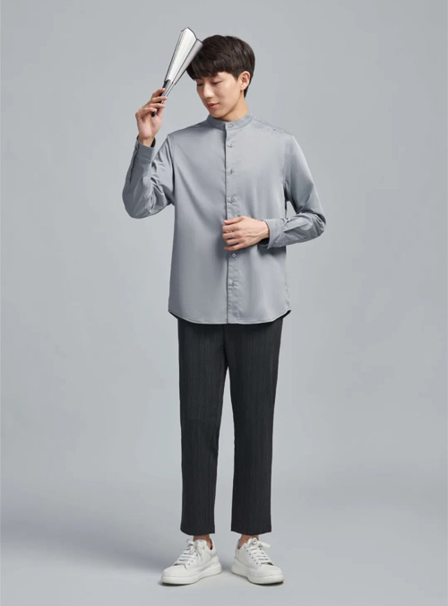 中式立领,为经典衬衫版型增添了一抹独属于东方男士的儒雅大方,君子端方,书墨家国,气质自然呈现,丝滑面料材质,上身舒适又自在。无论是日常穿着,又或者是通勤穿着,都是非常得体的。