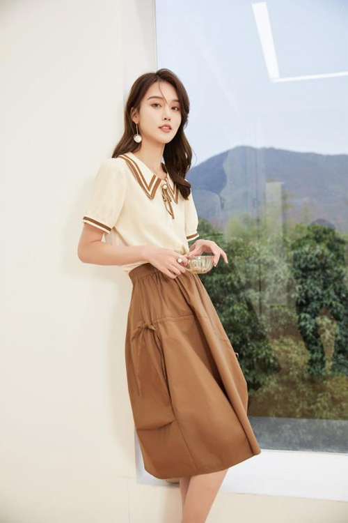 这套穿搭,采用了治愈氛围满满的大地色和米白色,剪裁流畅大气,套头衫与伞裙的设计颇具法式优雅气息,翻领款式文艺气息满满,上身温柔甜美,又非常减龄。卡歌娜女装本着“以产品为核心,以市场为导向,以客户为根本”的原则,将时尚与创新元素融入到产品中,推出亲民、实用又不失个性的百变服装。