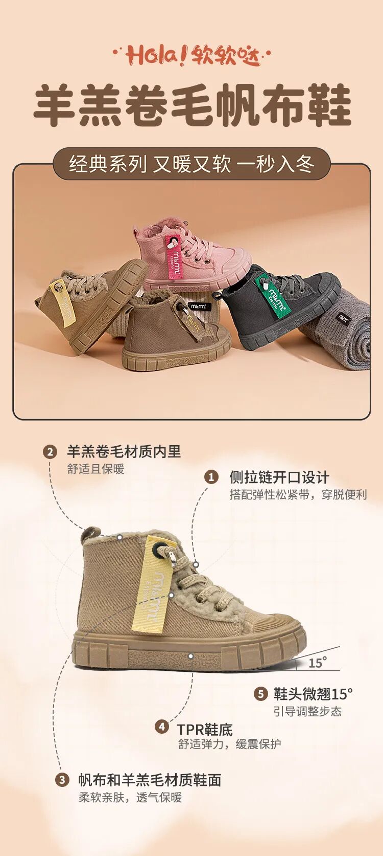 羊羔卷毛帆布鞋