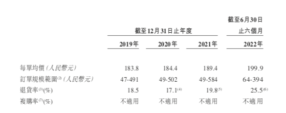 退货率快速上升也是原因之一。招股书显示,子不语在亚马逊上的网店退货率,从2019年的18.5%增加至2021年19.8%,2022年上半年达到25.5%,相当于每卖出4件衣服就有1件被退回。