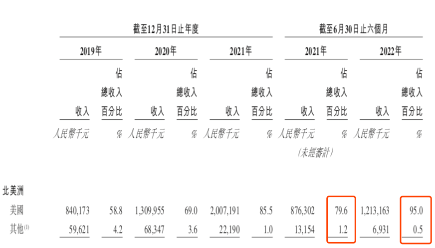 虽然子不语面向全球超过80%的国家和地区销售,但近两年美国市场集中度不断提高。2022年上半年美国市场在营收中的占比高达95%,这也是亚马逊的市场重心。
