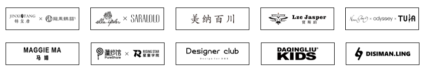 ONEADDONEGOOD、TRENDY STONE、concise-white、cottia、LEFAME、selfFab.、RODERIC WONG studio、zolle、DEL CHEN、POLLYANNA KEONG、晒谷场、Grace Deng、KANG JIANING、晨子CHEN-Z、Janet Chen、千衣原创、DAMOWANG、UNIX_T x 17m.face、觉一、LUJOE