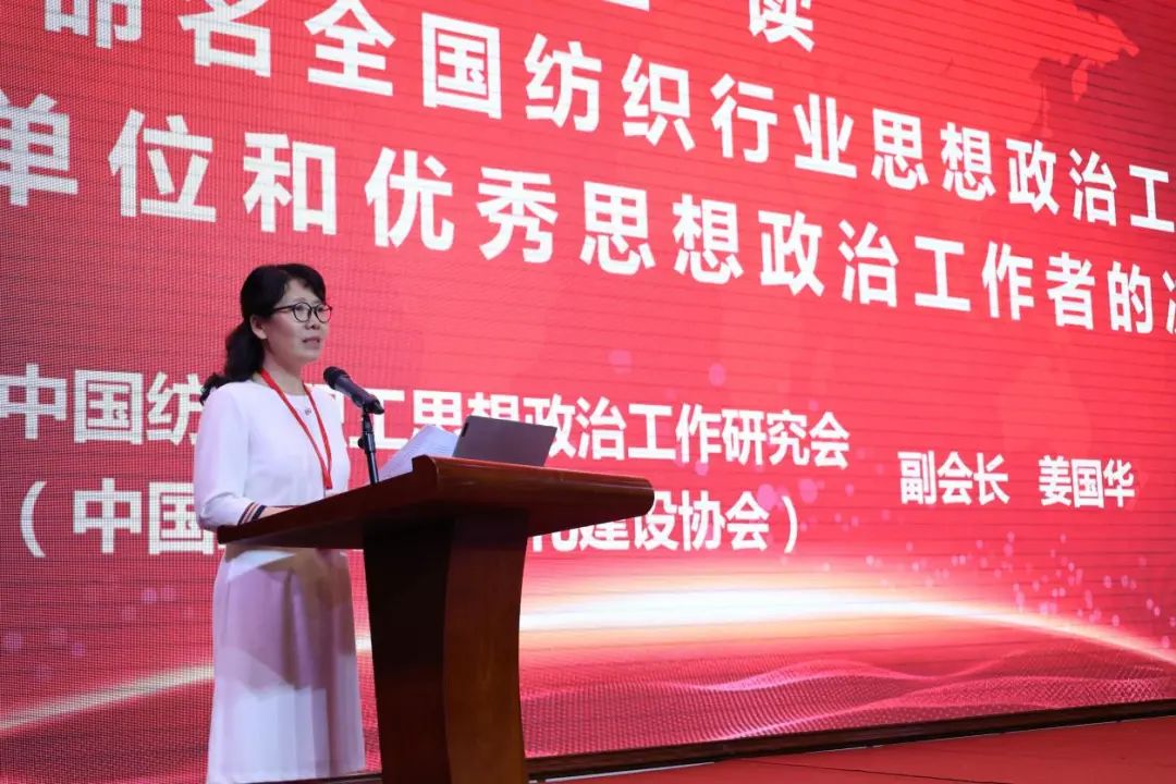 中国纺织职工思想政治工作研究会副会长姜国华宣读《关于命名全国纺织行业思想政治工作先进单位和优秀思想政治工作者的决定》。