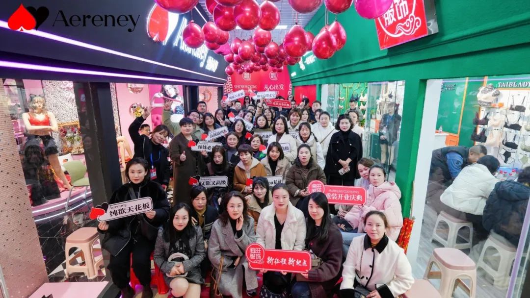 11月28日1点18分,深圳市莎斐妮服饰董事长·aereney爱恋伊品牌创始人·黄文祥先生与安徽海旺服饰有限公司总经理安水英女士及全国各代理商携手共同剪裁了这段新篇章。这次全新升级不仅仅是门店形象的改变,更代表了我们对品质、舒适与时尚的承诺。我们相信,这次升级会给您带来更愉悦的购物体验,让您尽情感受aereney带来的性感与自信。