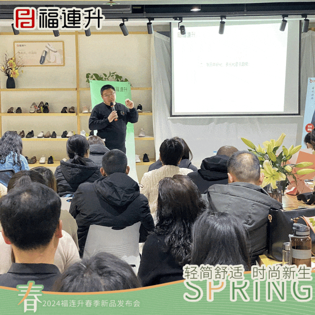 福连升工作人员现场帮助加盟商对春季产品进行深入解析,为春季新品销售增加更多知识卖点。
