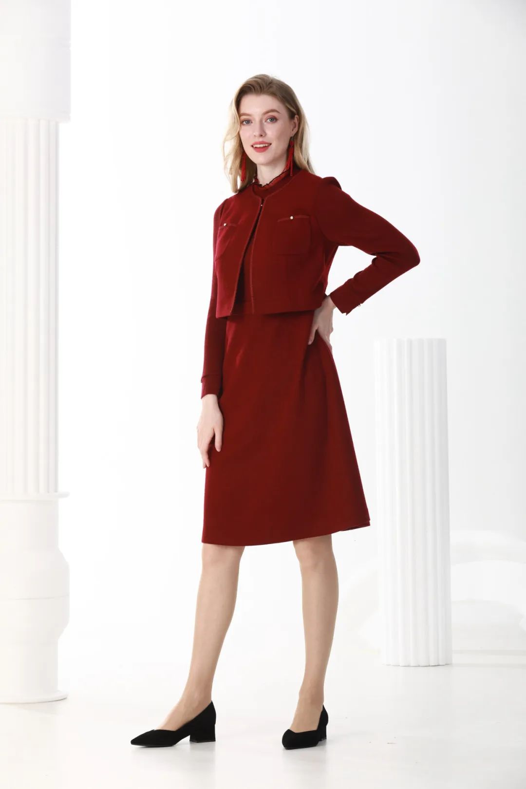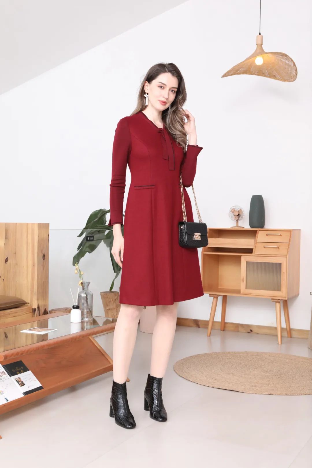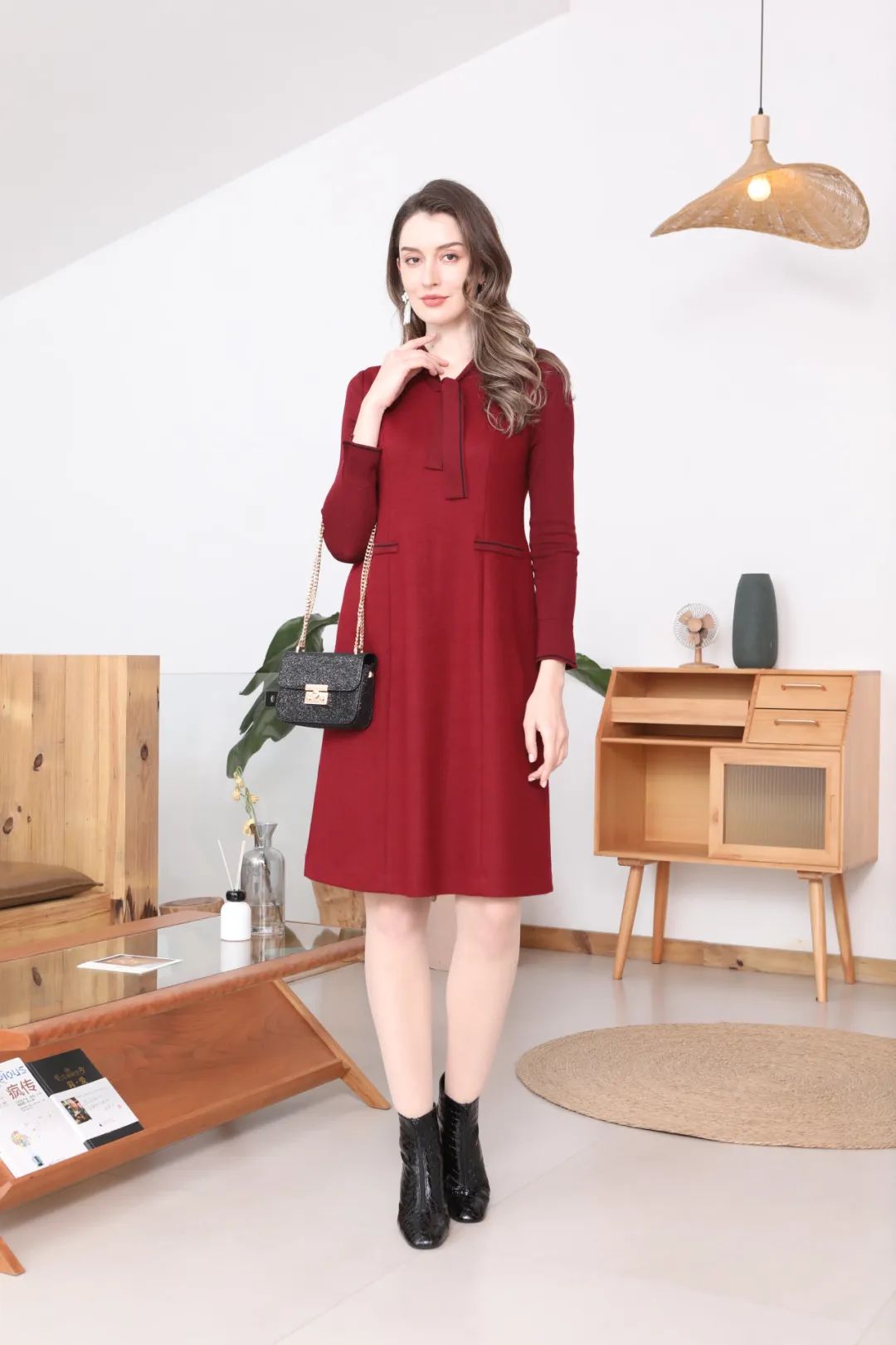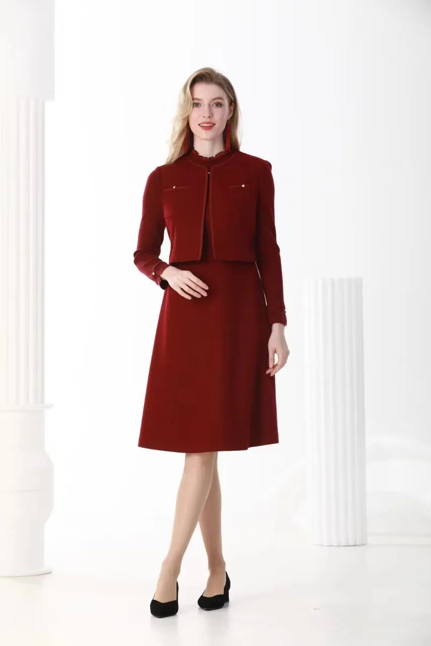 深红色假两件连衣裙,优雅与盈暖兼备,精巧廓形修饰身形比例,抒写摩登格调,描摹冬日美学,赋能通勤每时每刻。