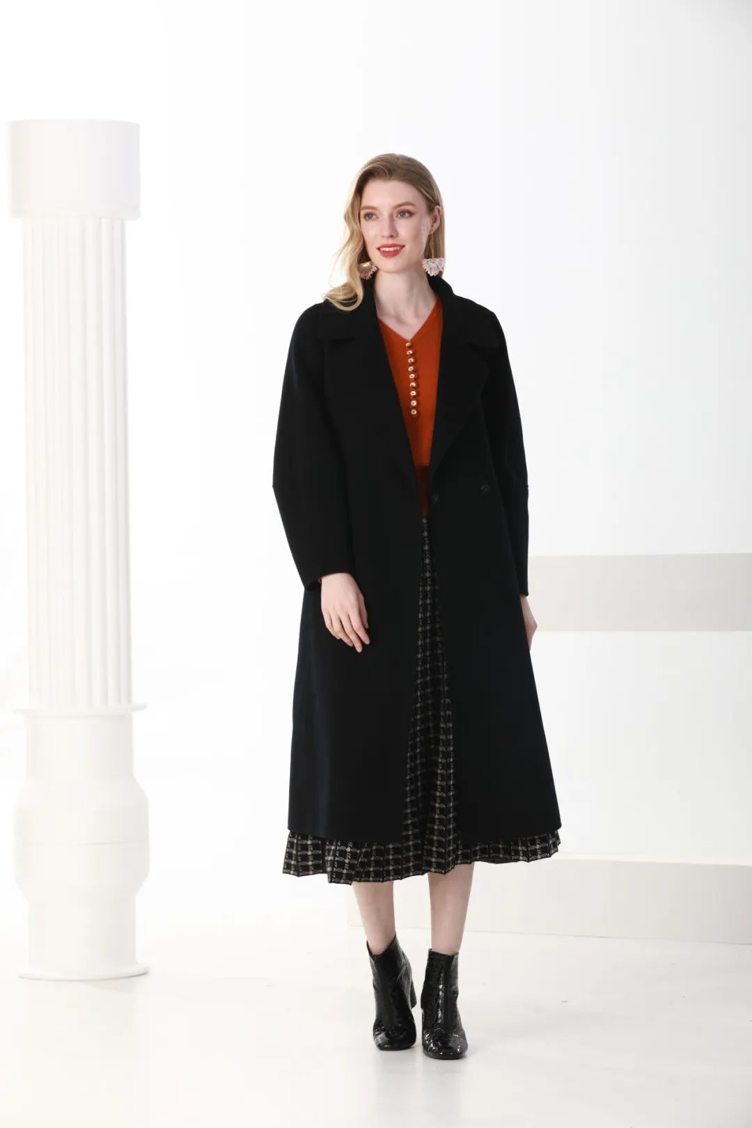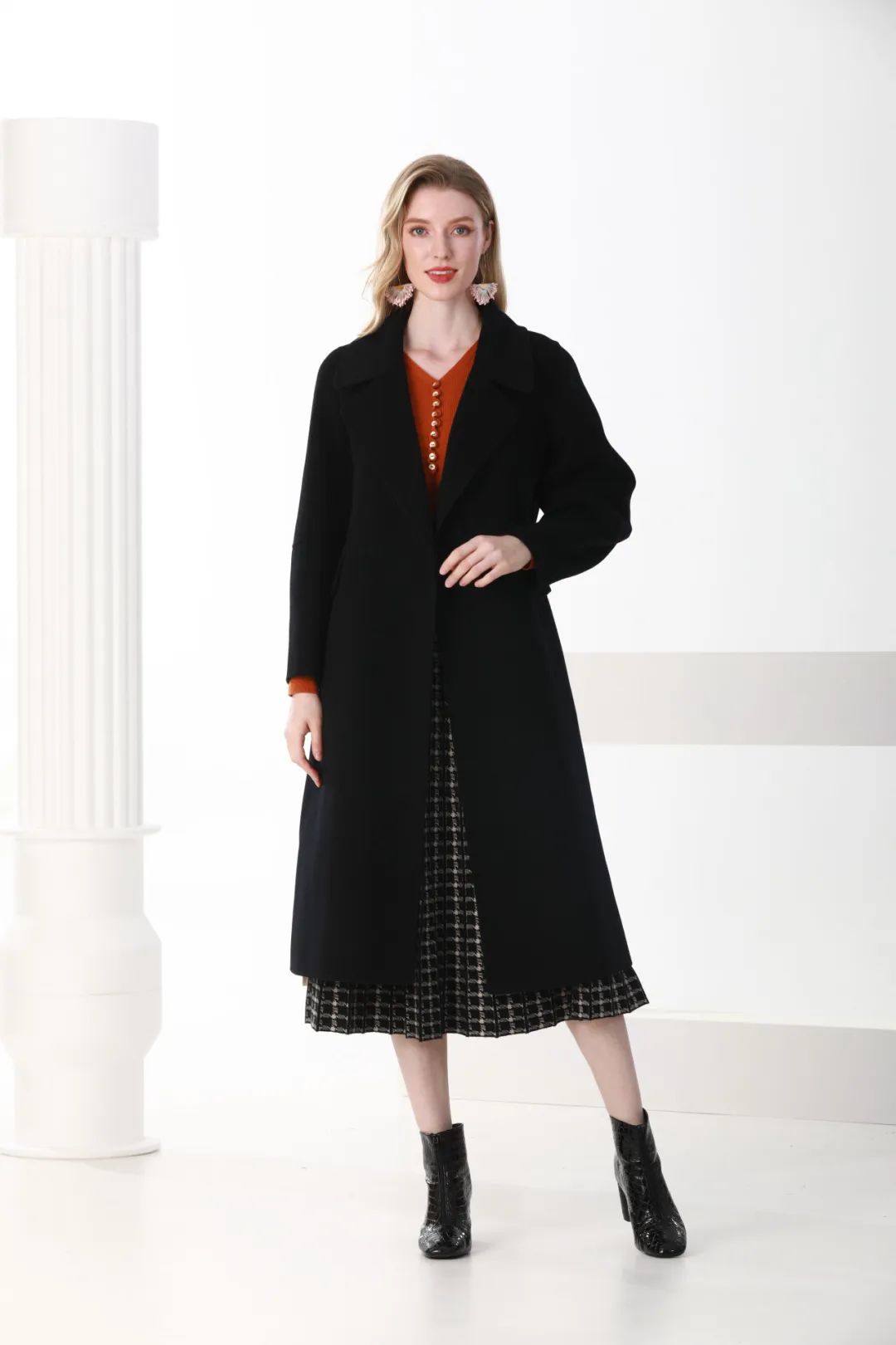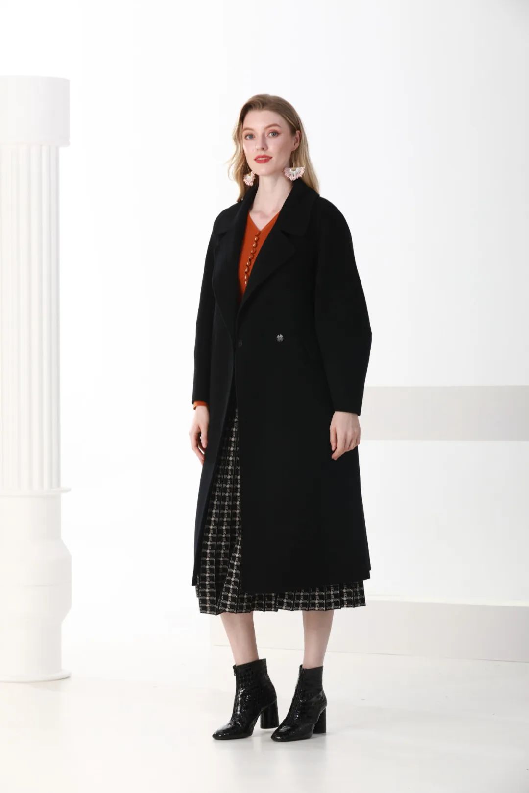 黑色双面呢大衣内搭桔色针织,鲜明亮眼,燃点生活的热情,挥洒自在个性,诉说渐次升盈的暖意。