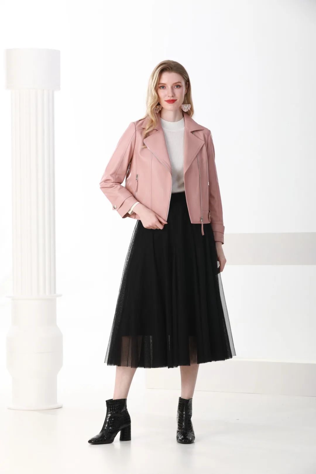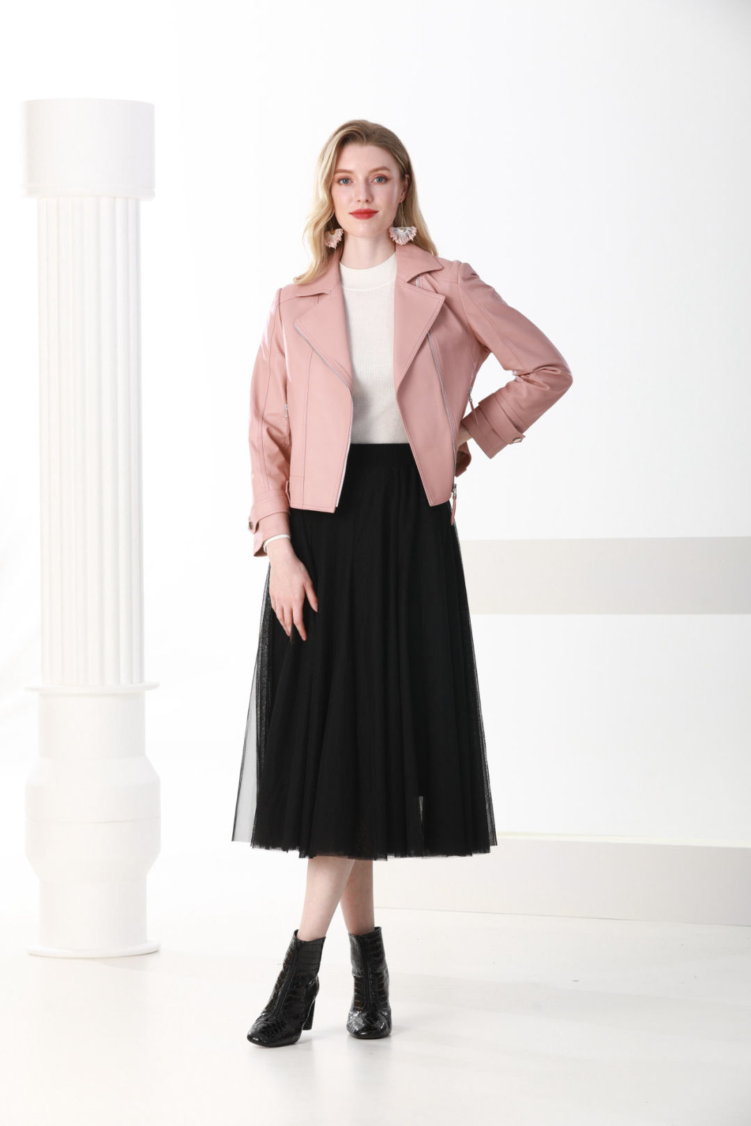 粉色皮衣外套内搭白色针织,以色彩编织浪漫,精致造型解锁日常仪式感,自如切换都市暖冬场合,遇见一座城市的温柔。