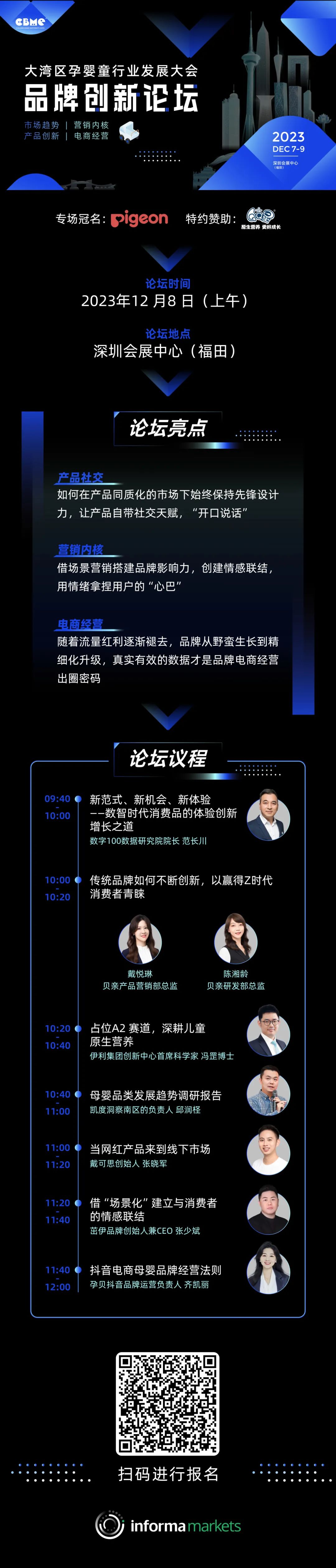 想要更深入的了解充满爱与创造力的贝亲,您还可以关注12月8日上午举办的品牌创新论坛,贝亲将从研发设计讲述如何让产品自带社交天赋,征服z世代宝爸宝妈!