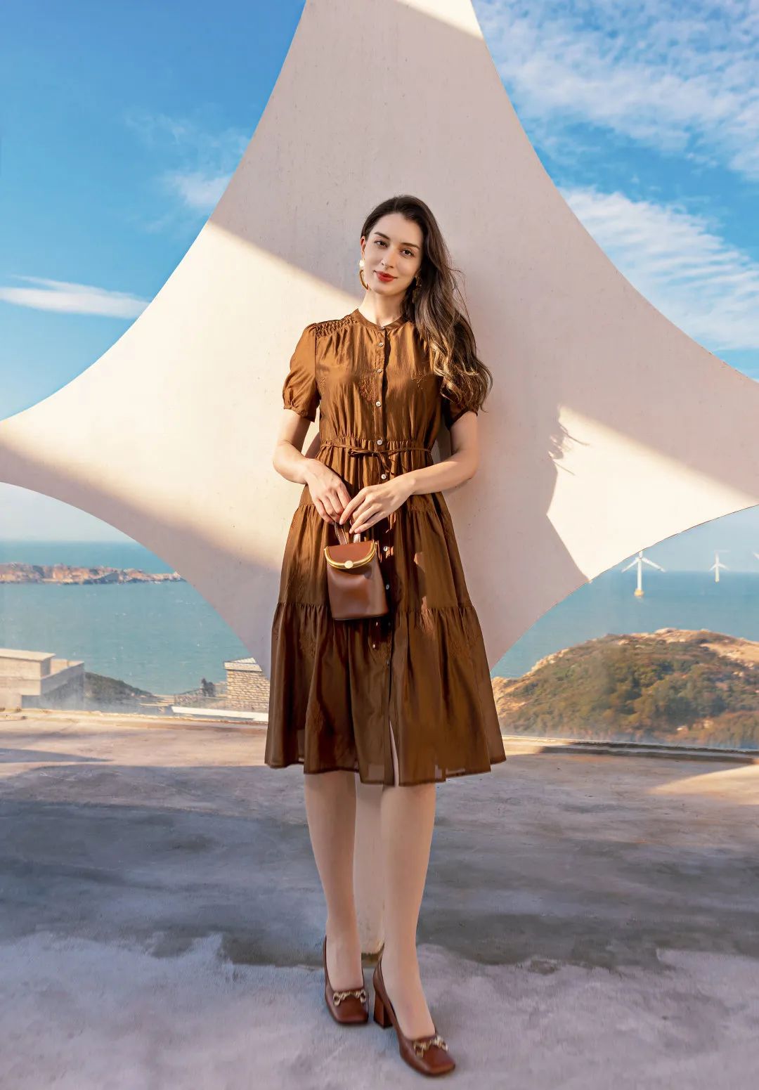 蔚蓝的天空、清透的晨光、柔和的夕阳、温情的大地……唐朱迪新装围绕航海蓝色、甜桔色、琥珀褐色、素瓷色等色调,为繁忙工作的都市女性,营造出复古治愈的度假氛围,带您感受无拘无束的假日魅力。