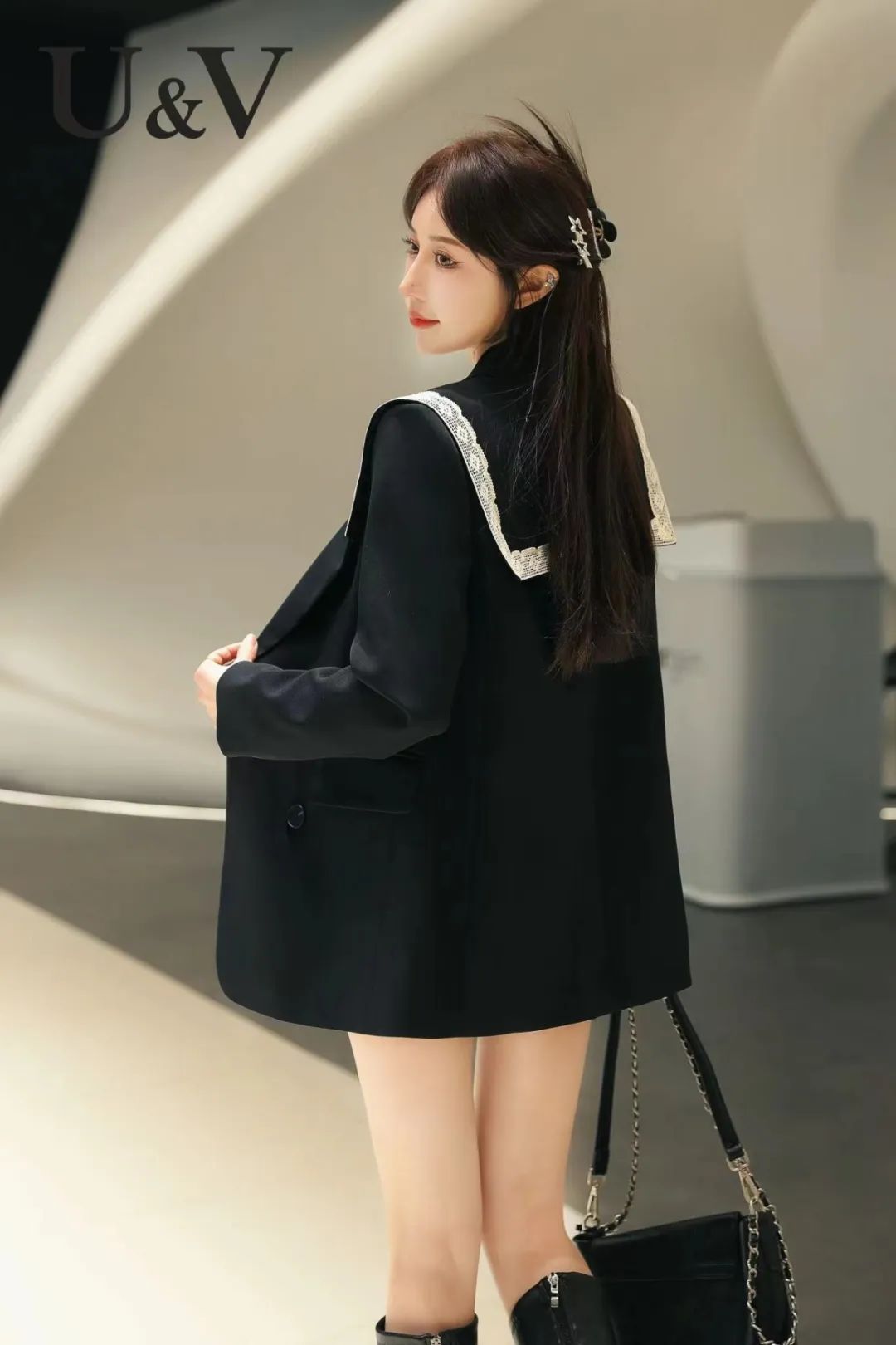 短外套的长度正好卡在腰部最纤细处