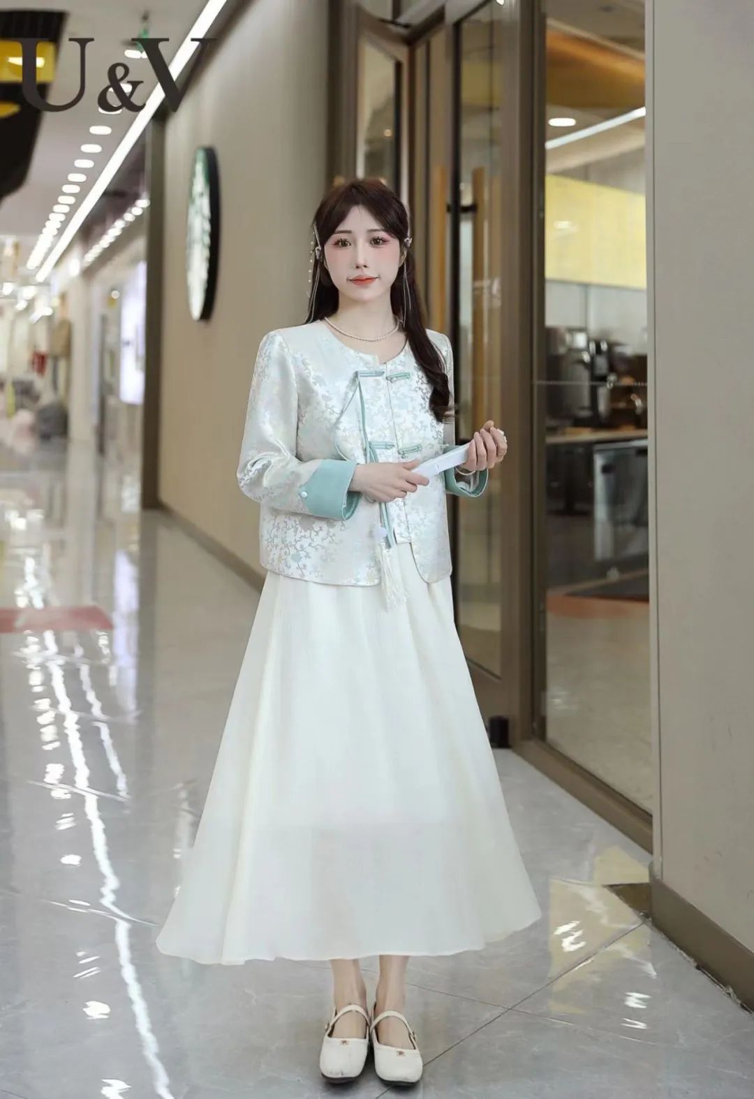 对襟的线条严谨而流畅