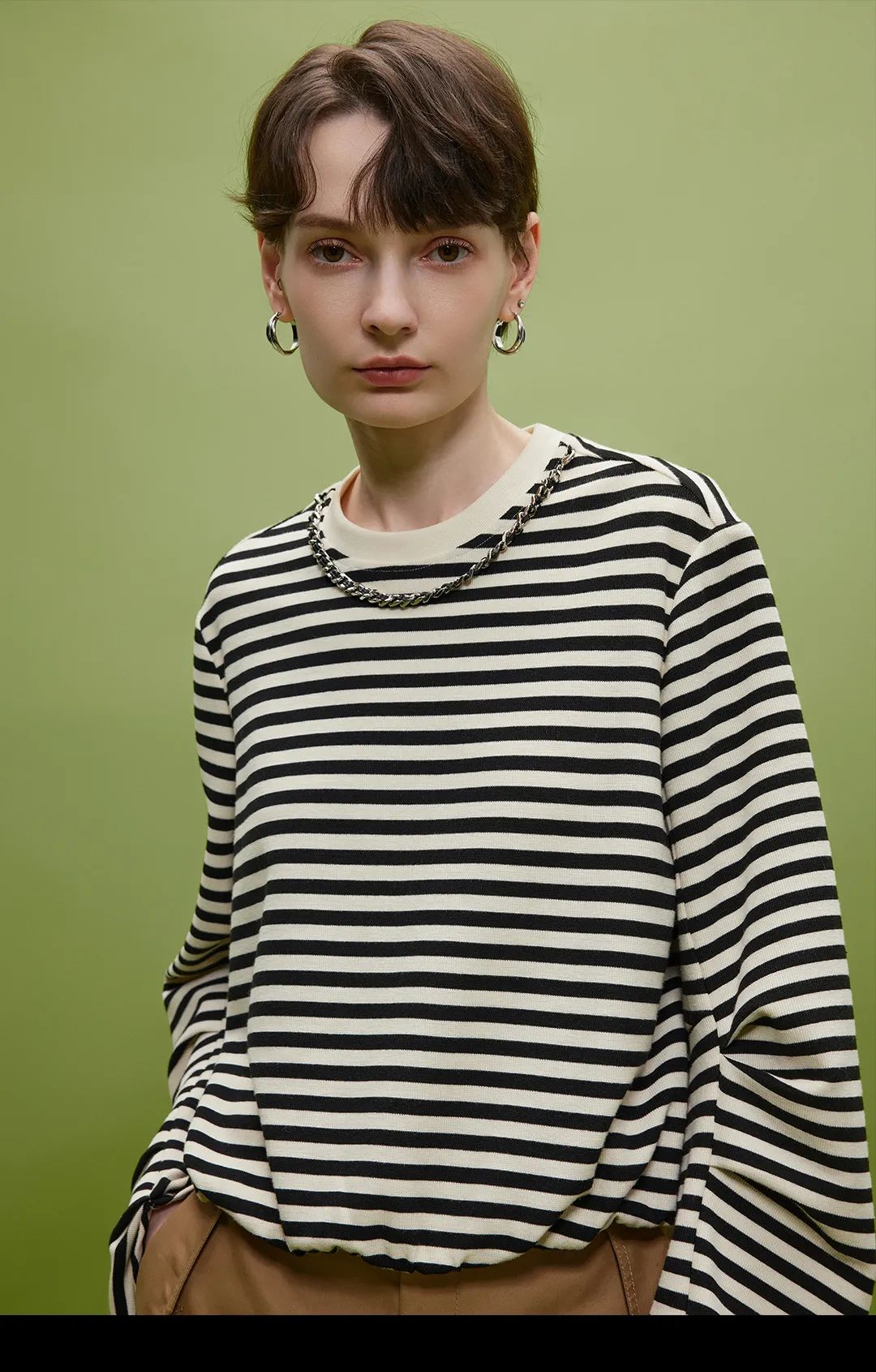 的配色,宽松的廓形,与绿意一拍即合。