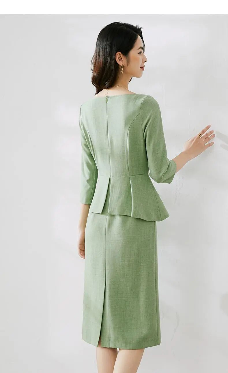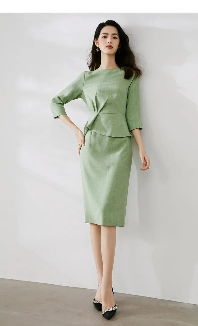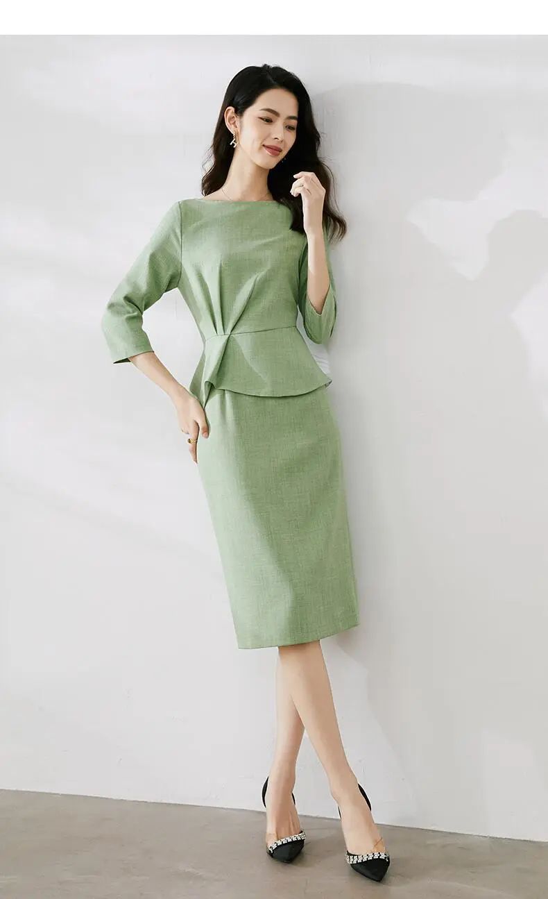 这件一字领高腰包臀连衣裙,绿色大气得体,彰显自身端庄大方的气质。