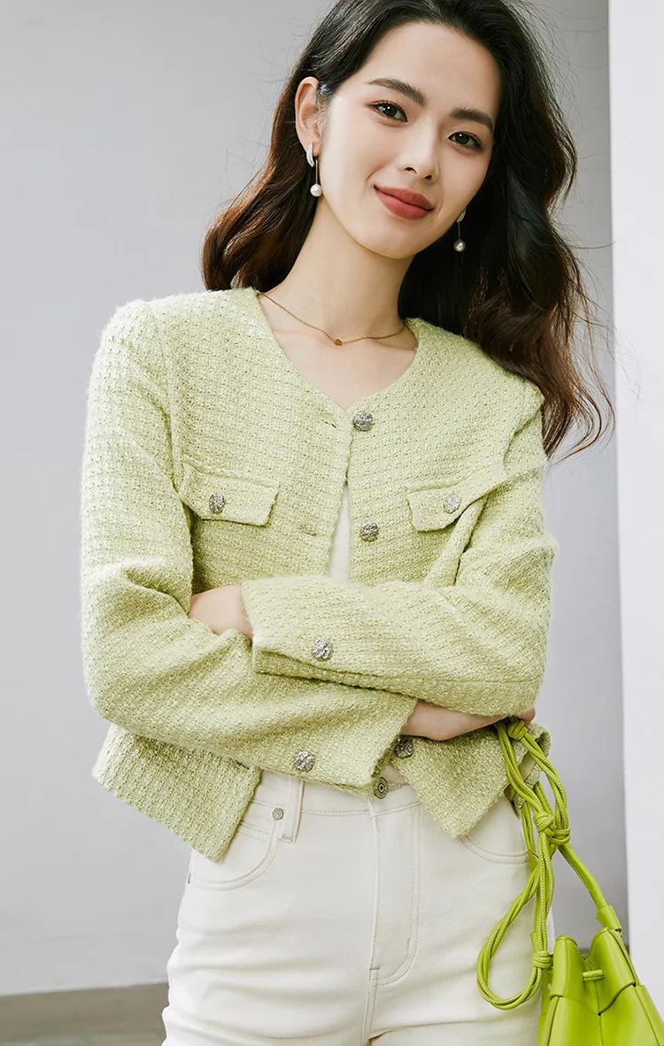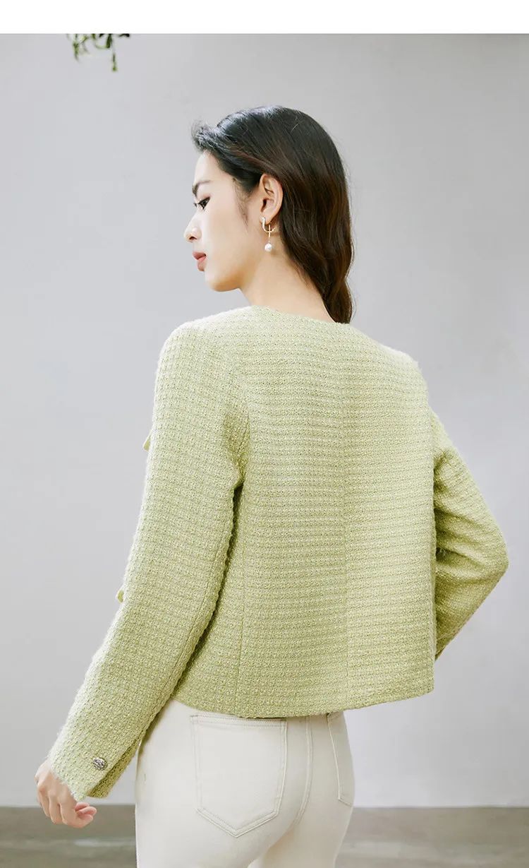 粗花呢编织 版型挺括 小垫肩设计 有里衬
