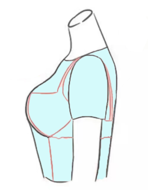 普通文胸:侧翼很窄,腋下附乳无法收拢。
