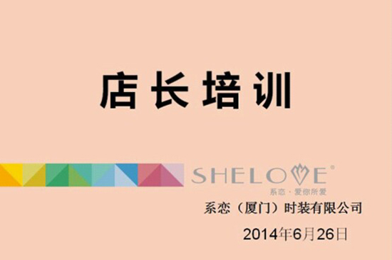 6月26日,为了进一步提升店长们管理店铺的综合能力,shelove系恋韩系都市时尚女装行政部组织直营店店长到总部进行培训。市场部督导林秀萍作为讲师,为店长进行为期一天的实战课程演练:从店长的角色定位、店面形象管理、高效的货品管理、业绩倍增、超越满意等多层次全方位讲解店长们需要的的核心技能和基本理念。