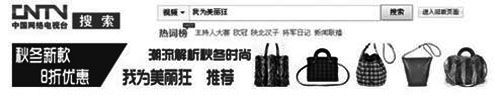 如央视的《我为美丽狂》和《女人我最大》两个以女性装扮为内容的节目,很受女同胞欢迎,有些错过电视节目的人就会去网上搜索视频。如下如所示,当在中央电视台的网站上搜索“我为美丽狂”,就会有SUSU包的广告。
