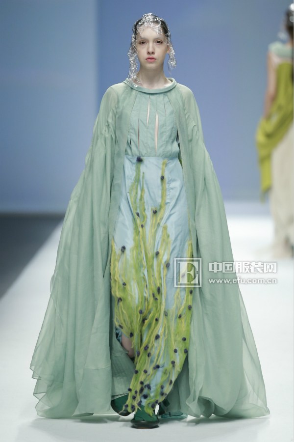 EFU记者:我看到水母元素贯穿我们整个秀场,它与这次走秀的主题回家有什么联系?